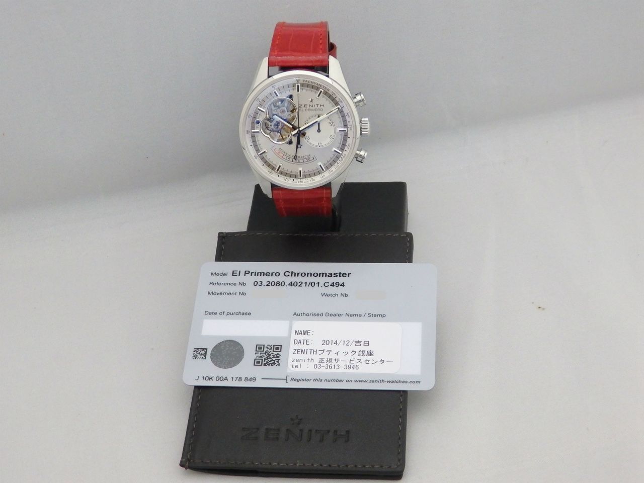 2014年12月に銀座ゼニスブティックにて販売された正規保証書付きです。