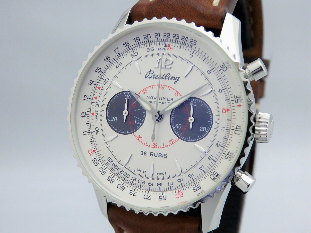 ケースサイズも38mmと程よい大きさの上品なナビタイマーです。
