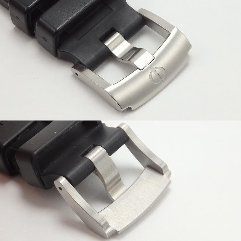 ブラックのバルカナイズドラバーストラップと、