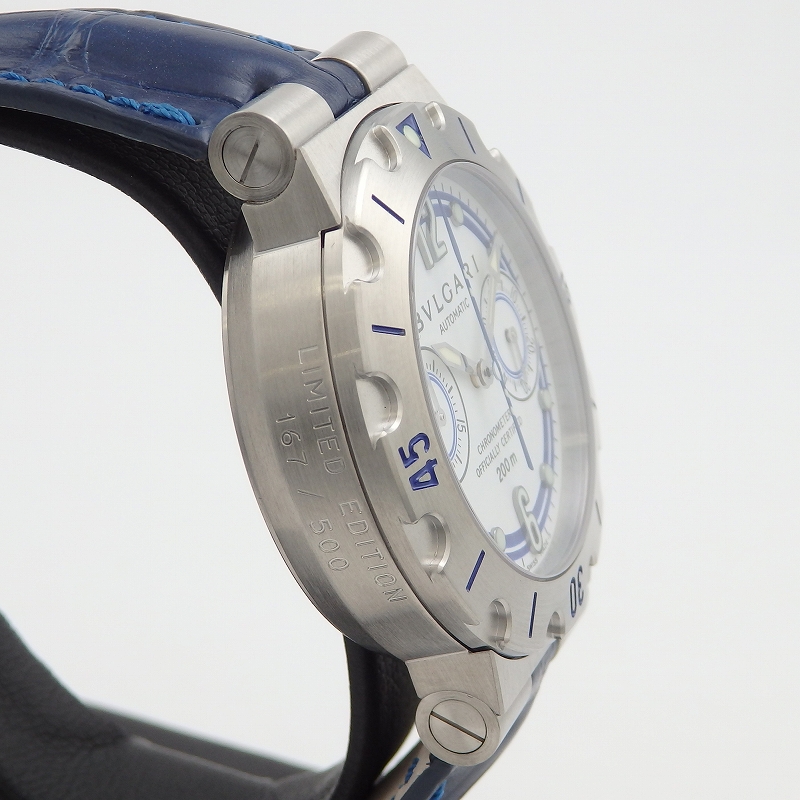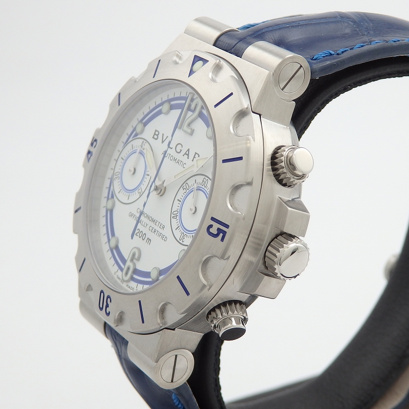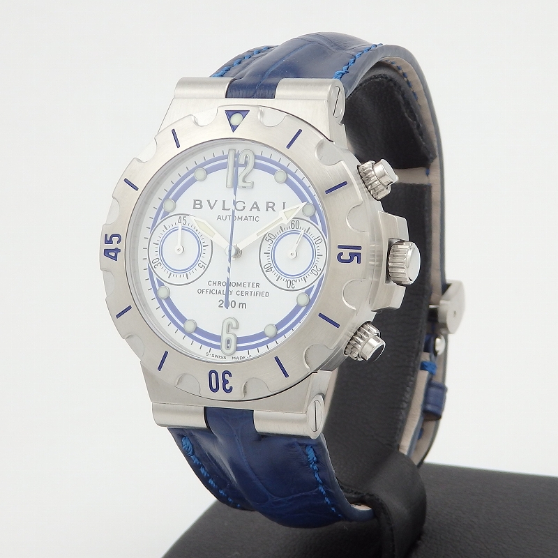 世界最高峰のセーリングヨットブランド「Nautor Swan」の500本限定で製作された希少なモデル。入荷時より大変状態が良く、ベルトはブルガリ純正の新品ブルークロコ製に交換済みのお品物です。